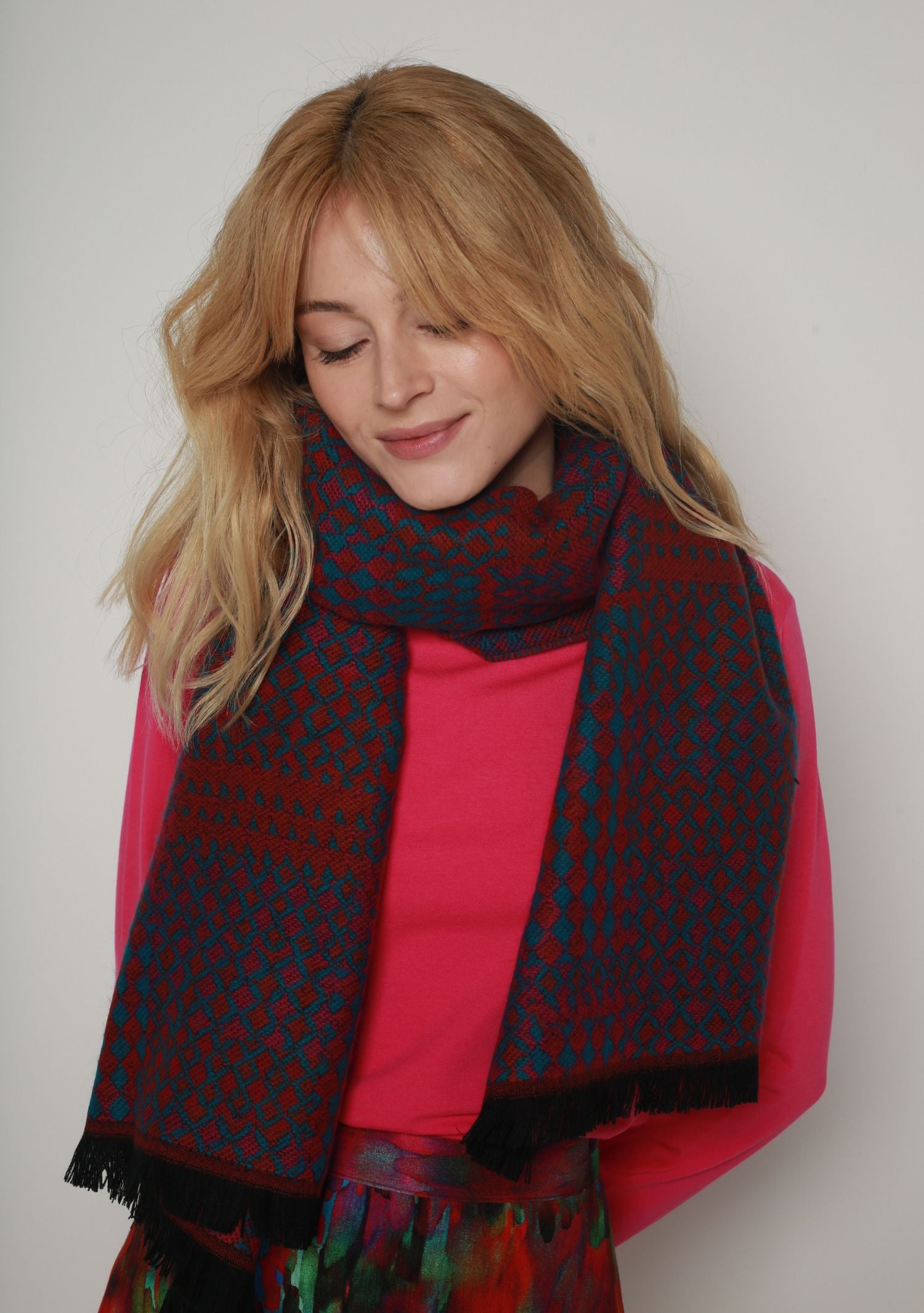 INFOS ARTISTE ET MOTIF : Avec l'Étole Polylaine Faience bleu et rouge, transformez vos tenues grâce à ses multiples possibilités de nouage. Sa taille généreuse et sa douceur vous permettent de la porter de différentes façons, ajoutant une touche de chaleur et de style à n’importe quel look. Personnalisez votre apparence tout en profitant du confort de cette écharpe polyvalente. Un indispensable pour toutes vos saisons !