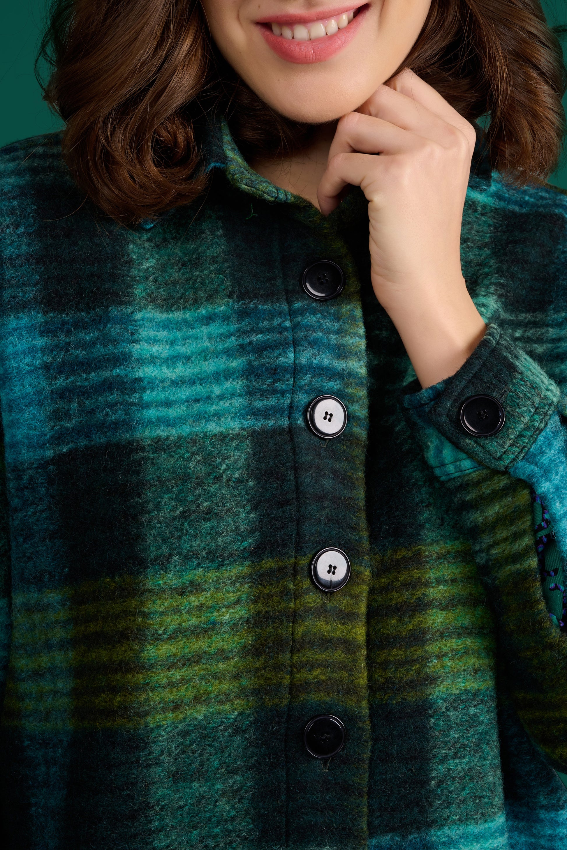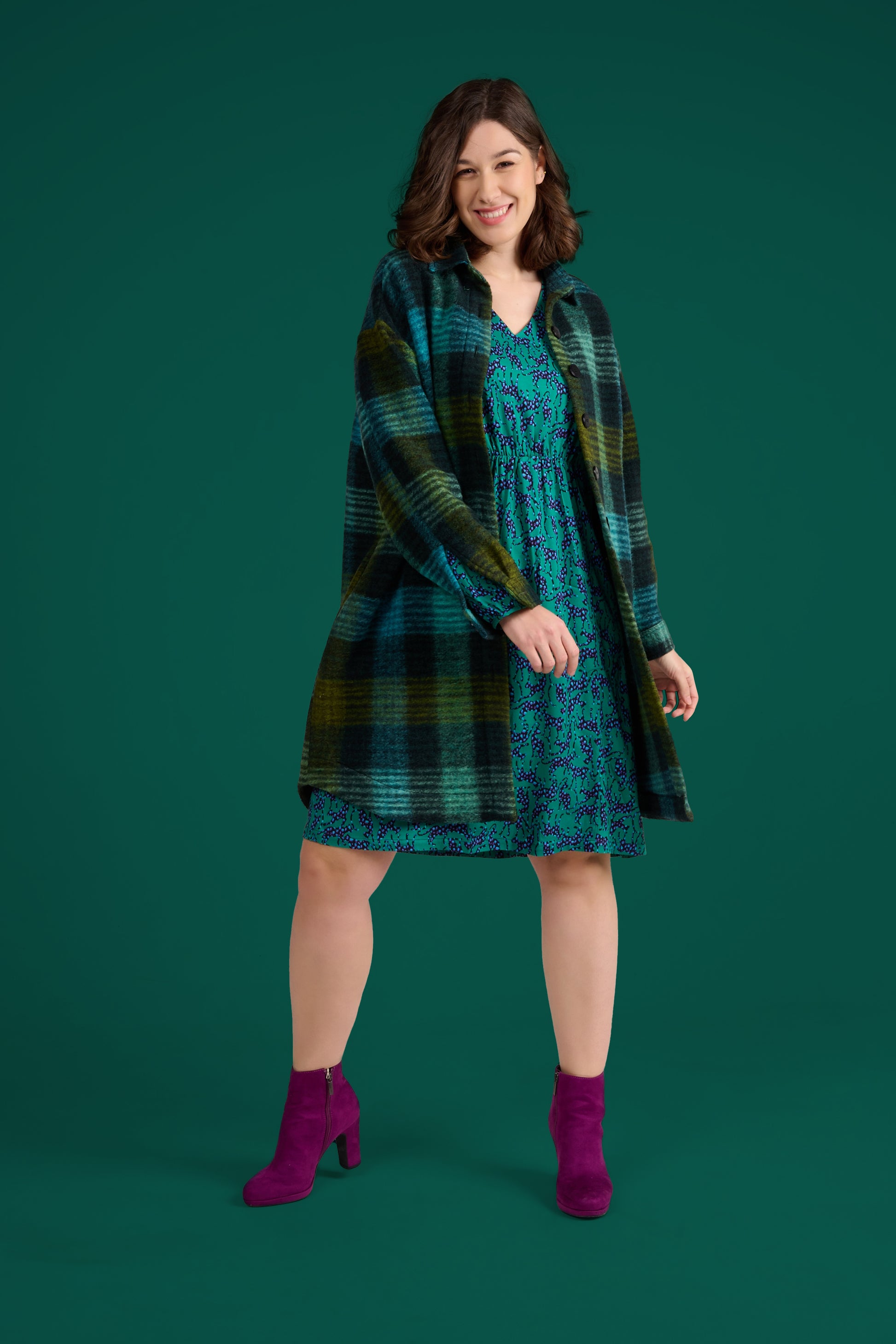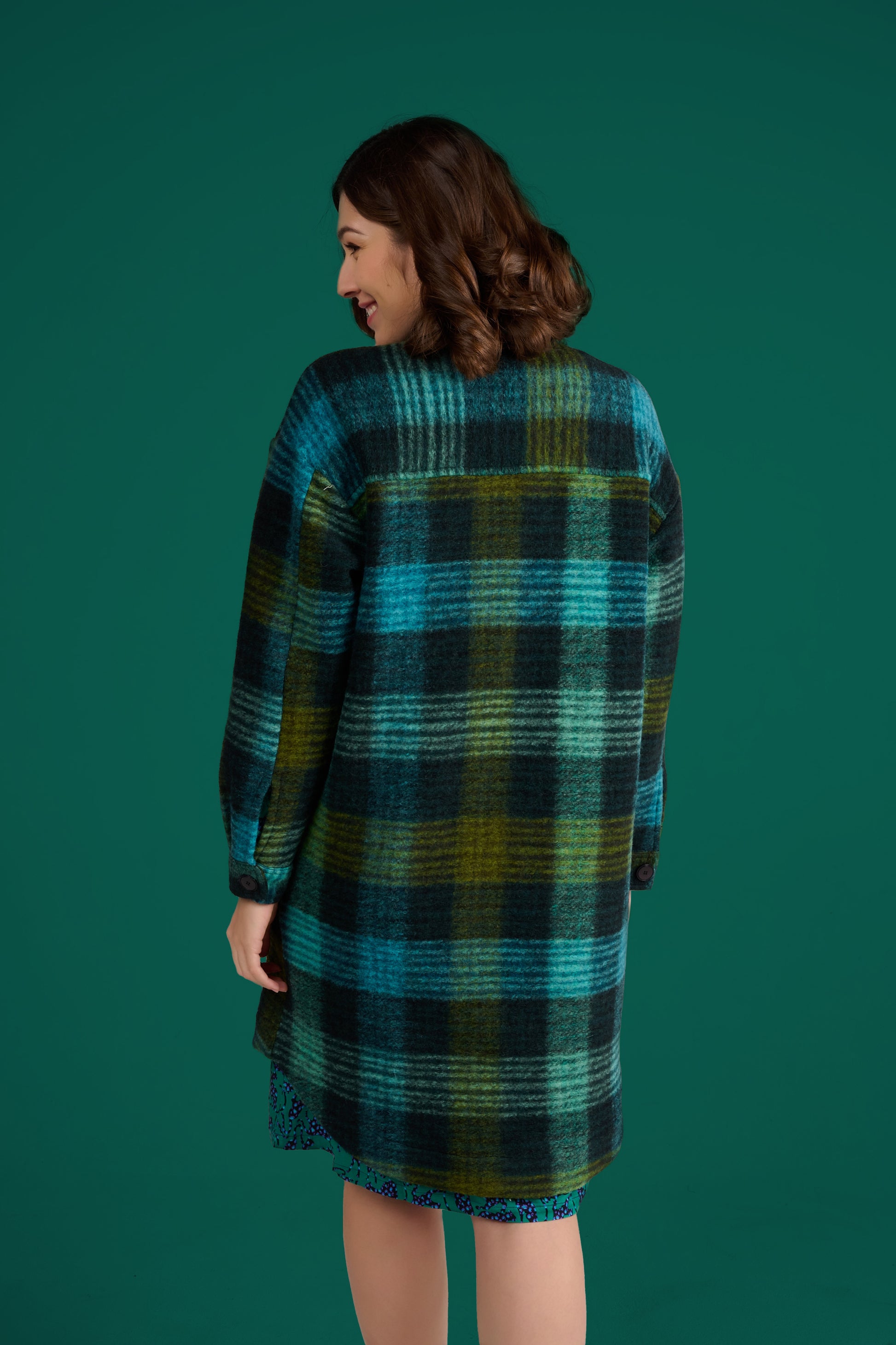 INFOS ARTISTE ET MOTIF : La Sur Chemise Somi Uni Carreaux longue, en laine douce, est parfaite pour un look décontracté. Avec ses carreaux verts et noirs, elle peut se porter ouverte par-dessus une robe à motif pour un style casual chic. Une pièce idéale pour ajouter une touche de chaleur et d'élégance à vos tenues automnales et hivernales.
