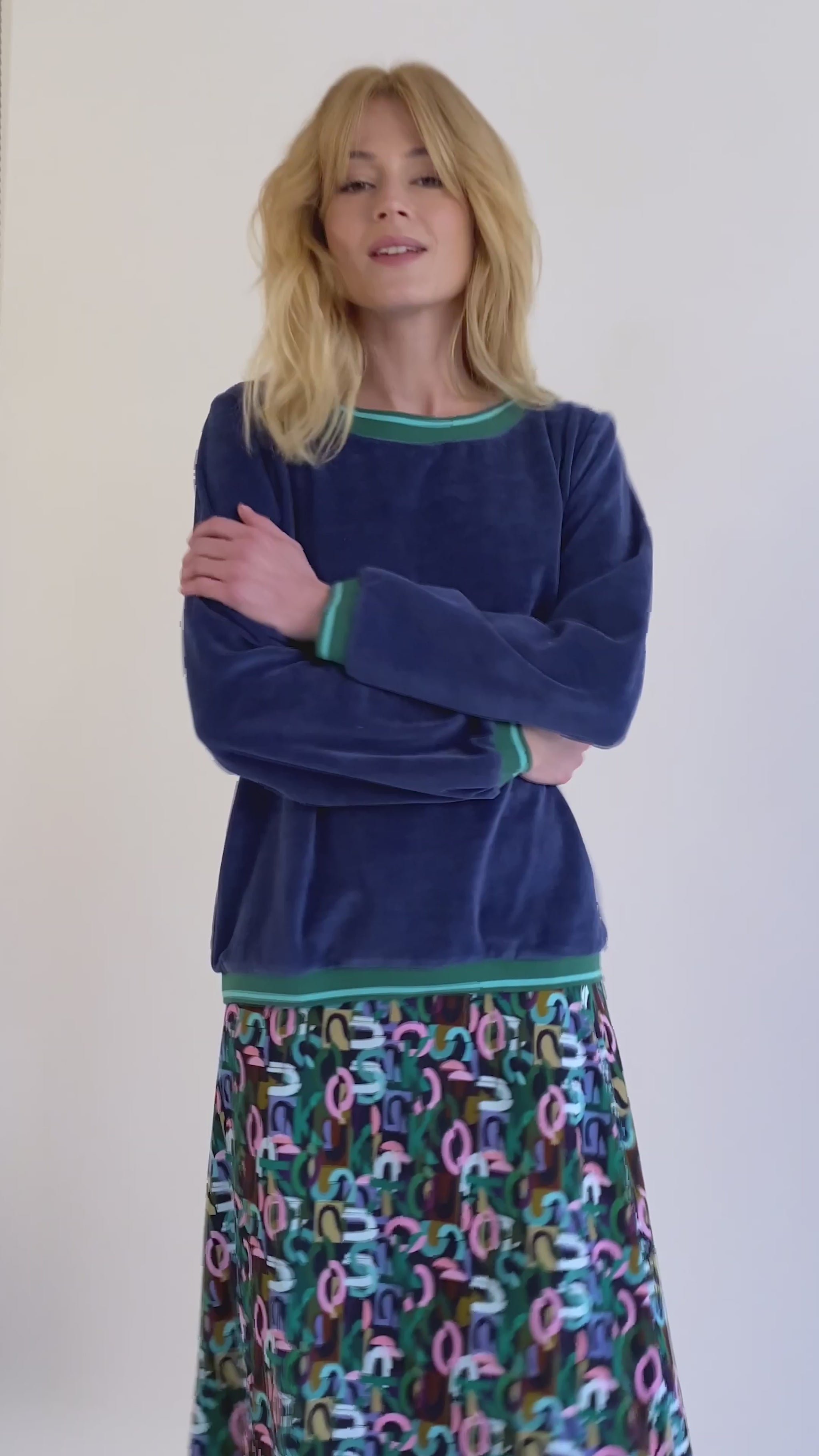 TAILLE ET COUPE : Le mannequin mesure 173 cm, fait un 38 et porte la taille 40. Son tour de poitrine est de 79 cm, son tour de taille de 59 cm, et son tour de hanche de 88 cm.